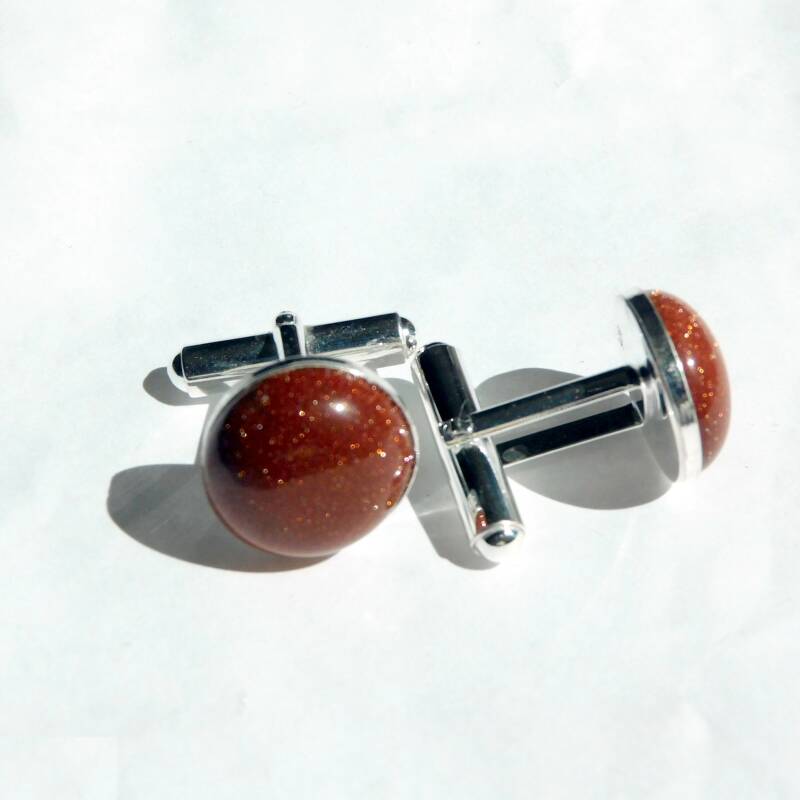 Bijzondere manchetknopen van echt zilver met een goudsteen
