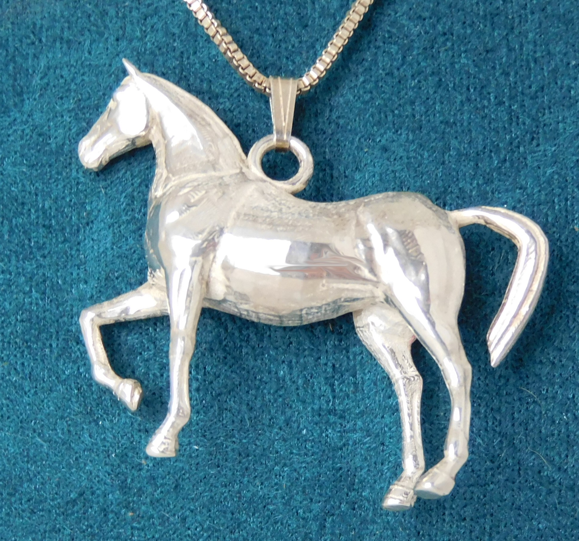 Grote Zilveren Hanger Akhal-Teke paard – Massief 925 Zilver – 40 x 45 mm – Collier van 50 cm