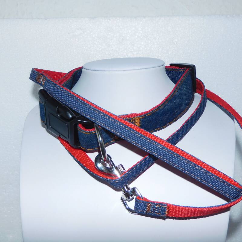 Jeans set – Uitlaatriem + halsband- in 2 kleuren —