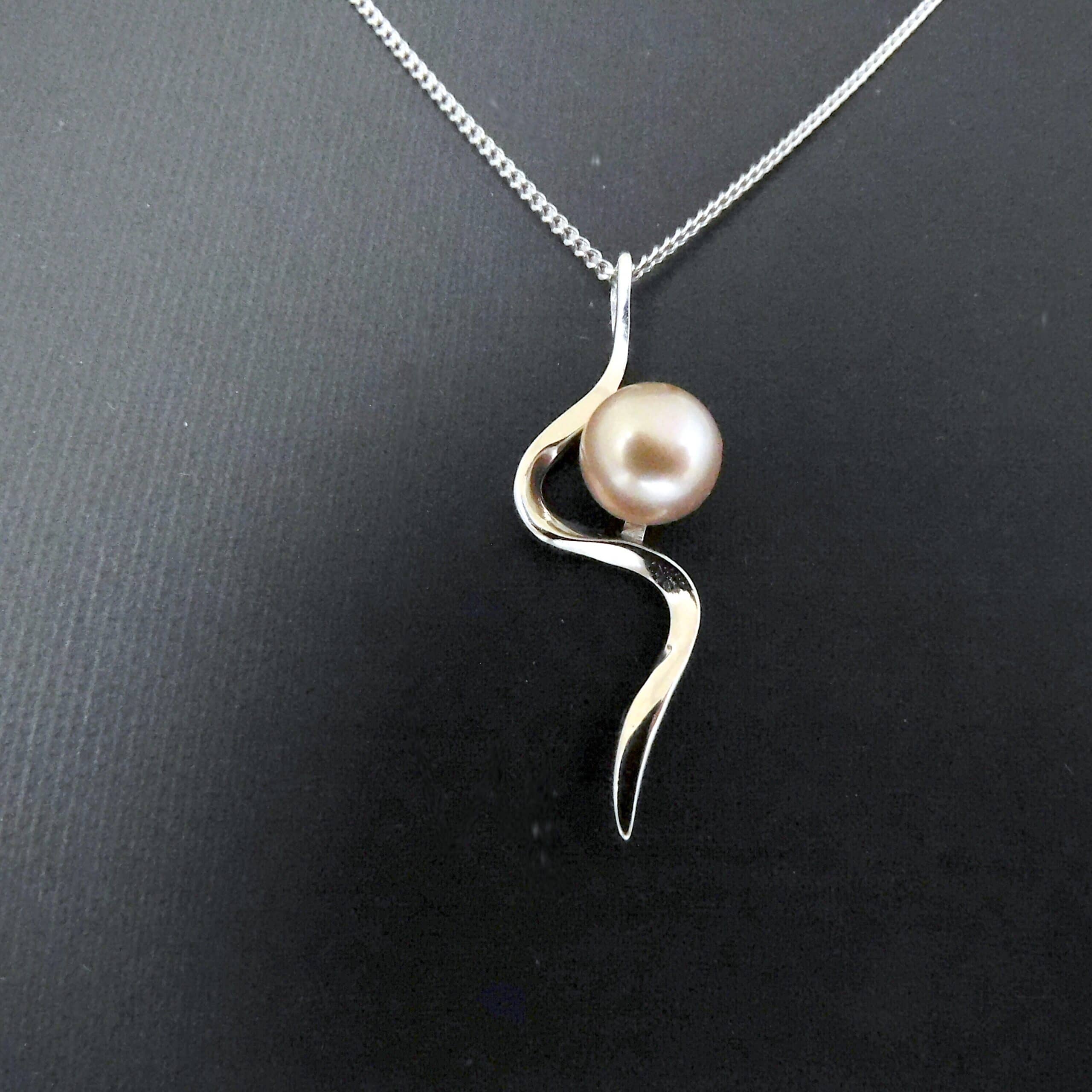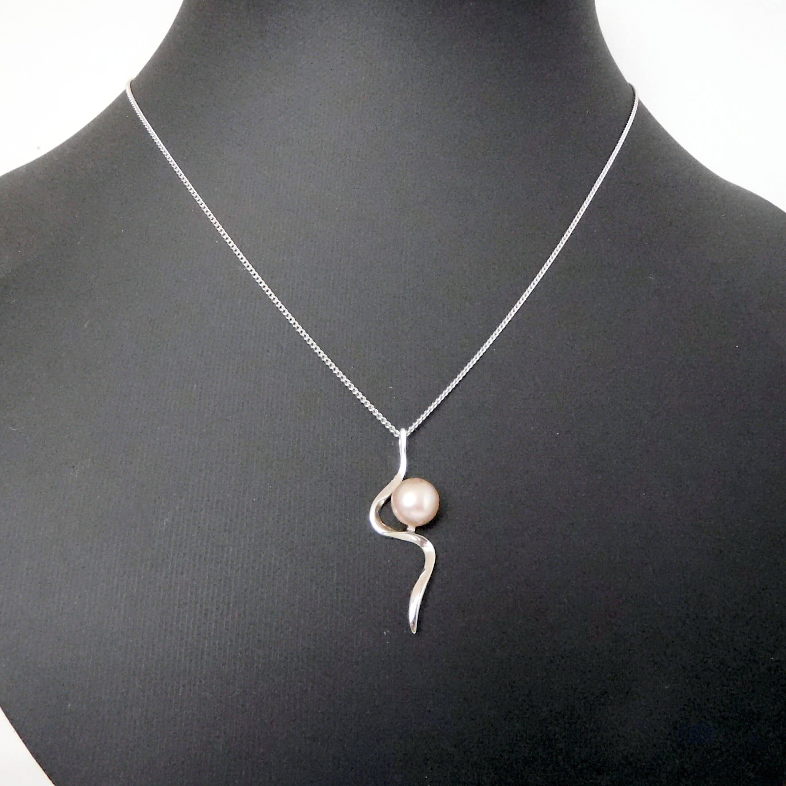 Prachtige slangenhanger – Zoetwater parel – Collier 45 cm – 925 zilver