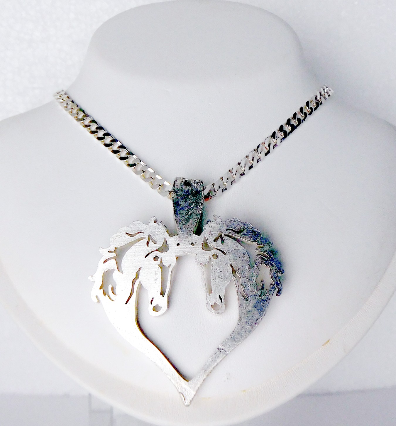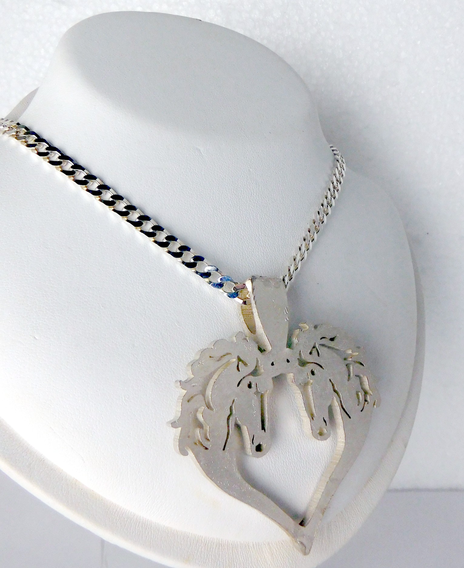 Prachtige zilveren hanger van 2 paardenhoofden – in een hartvorm – grote maat – met gourmet collier