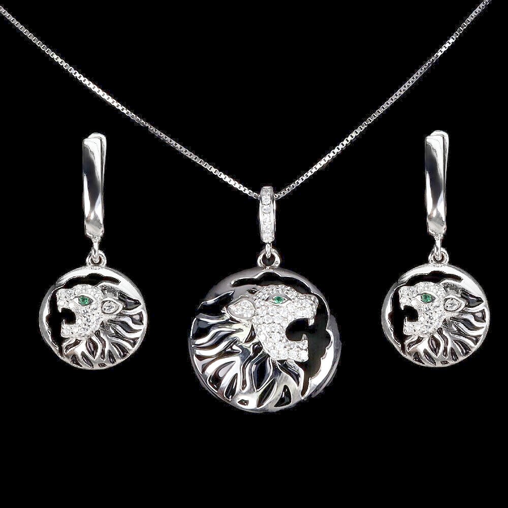 ‘- Schitterende zilveren sieraden set – een hanger in de vorm van een tijgerkop – bijpassende oorhangers.