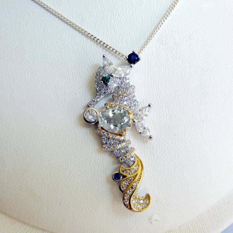 Schattig zeepaardje van echt zilver, met gouden details